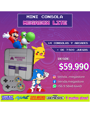 Sistema compatible: MegaBox, Windows, Android, Retropie, PS3, PC, Mac, Linux, TV Box, Android, Raspberry Pi, Emuelec, Batocera, Recalbox, Retropie, NES mini, SNES mini.